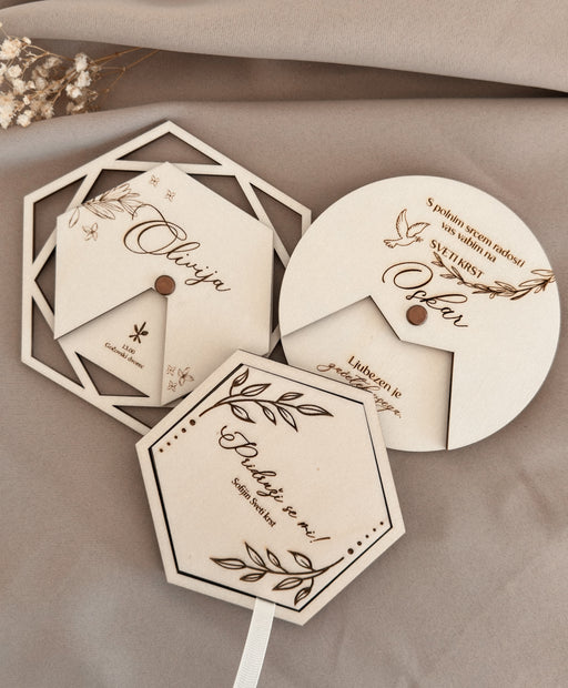 MINIMALNO NAROČILO - 10 KOSOV Ustvarite nepozaben prvi vtis z našimi čudovitimi lesenimi vabili, ki so popolna izbira za praznovanje svetega krsta,...