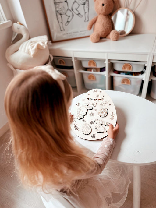 Velikonočna pobarvanka/puzzla in set mini barvic. Lastnosti izdelka: Material: FSC® certificiran topolov les Dimenzije: 30 x 20cm Prepustite ot...