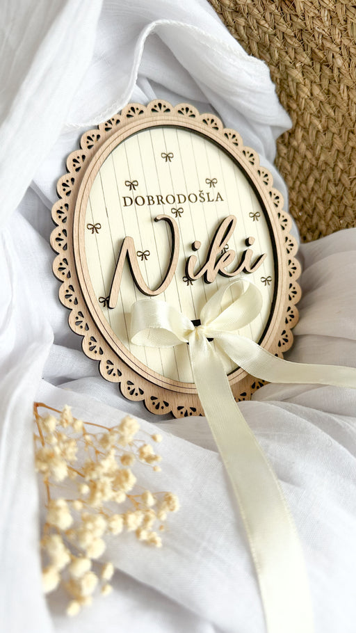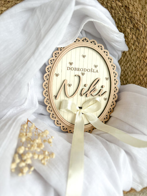 ♥ Oznanite prihod novega družinskega člana na prav poseben način ♥ Personalizirana kartica z imenom Lastnosti izdelka: Material: hrastov in top...