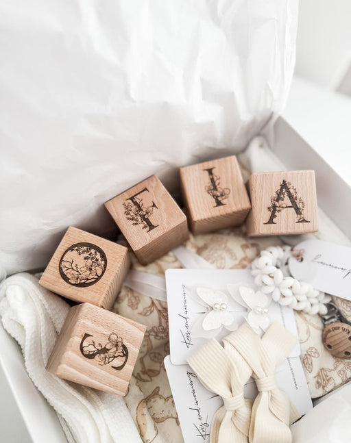Naše čudovite lesene kocke z graviranimi črkami so popoln dodatek za otroško sobico, fotografiranje, oznanitve in kot nepozabno personalizirano dar...