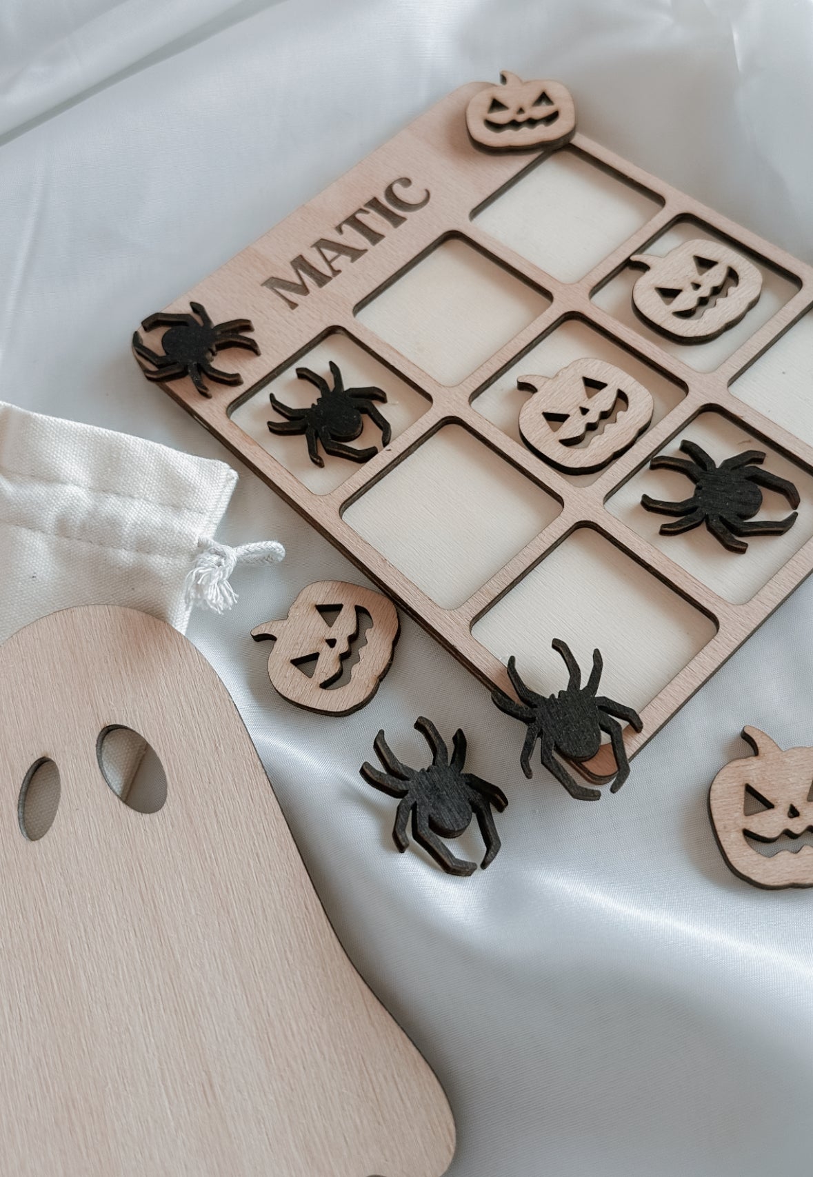 Lesena različica priljubljene igre križci in krožci v strašno zabavni halloween preobleki! Namesto klasičnih X in O se tukaj pomerijo bučice in pajki, kar igri doda prav poseben čar. 🕷️🎃