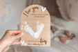 Tablica je zasnovana tako, da nanjo sami ustvarite odtis stopal z barvo, ki je varna za dojenčke, nato pa postane čudovit spomin, ki ostane za vedno. Personaliziran napis in ime otroka dodata piko na i temu edinstvenemu darilu.