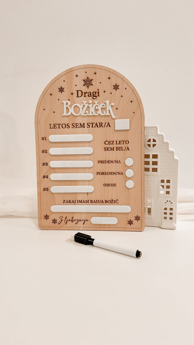Tablica na katero z otrokom vpišete vse potrebne podatke in jo nastavite Božičku.